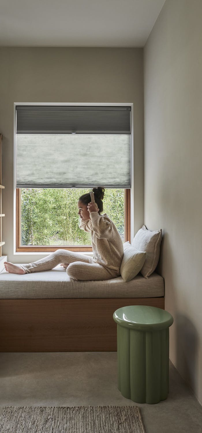 PowerView® automation, ons systeem voor elektrische raamdecoratie, is volledige koordloos. Hiermee bedien je je raamdecoratie via een app, een afstandsbediening of via je smarthome systeem in huis. Hier komt geen koord aan te pas, wat dit een hele veilige optie maakt.