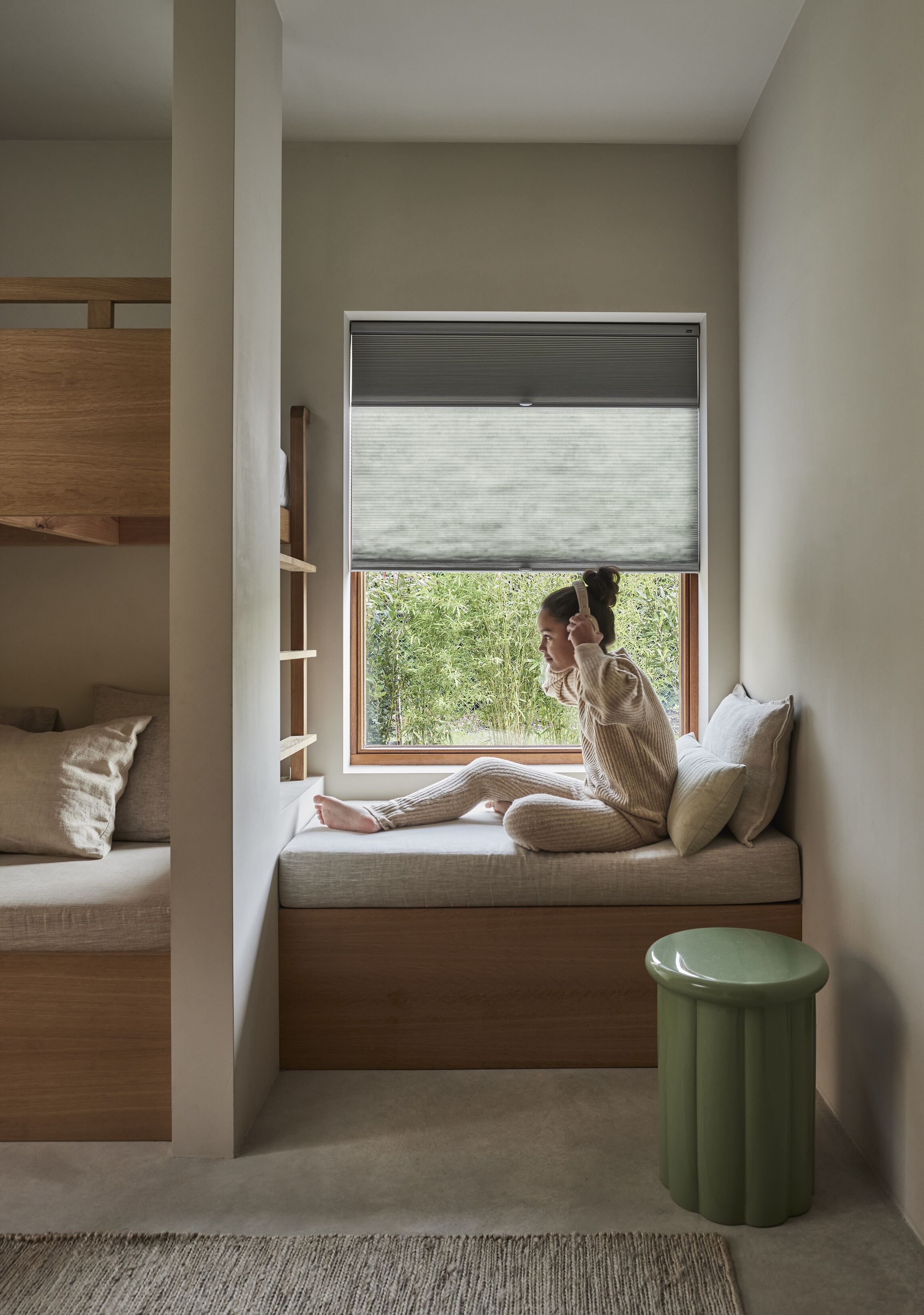 PowerView® automation, ons systeem voor elektrische raamdecoratie, is volledige koordloos. Hiermee bedien je je raamdecoratie via een app, een afstandsbediening of via je smarthome systeem in huis. Hier komt geen koord aan te pas, wat dit een hele veilige optie maakt.
